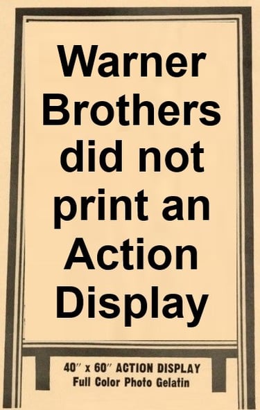 American Display Company was a company based in New York City and from 1936 to roughly 1941, this company printed its own one-sheets and lobby card sets (and a very few inserts, half-sheets, three-sheets, 40x60s and stills) for three major studio movies (Warner Brothers, Paramount and United Artists, but no other studios). The items almost always feature a tiny legal disclaimer and cast credits only. The posters and lobby cards are from the original release of the movie, and almost always have completely different artwork from the regular studio release. Before it was discovered by noted poster dealer/historian Walter Reuben, collectors did not know the name of this company (and thought it to be located in the Midwest), and it is often referred to as the "other company" (and we will continue to refer to it that way, since collectors know it that way).