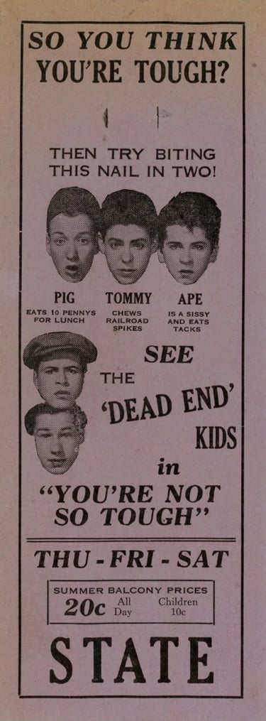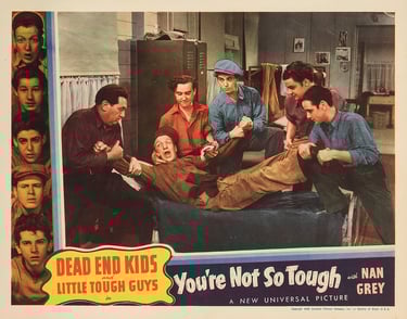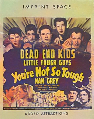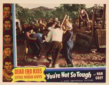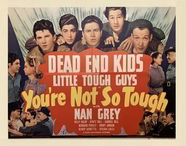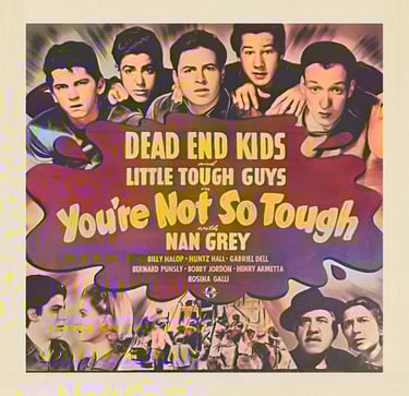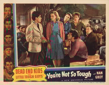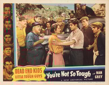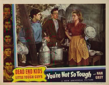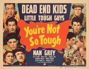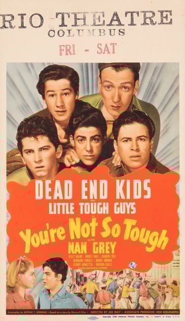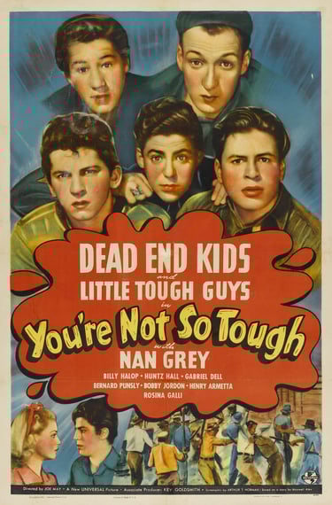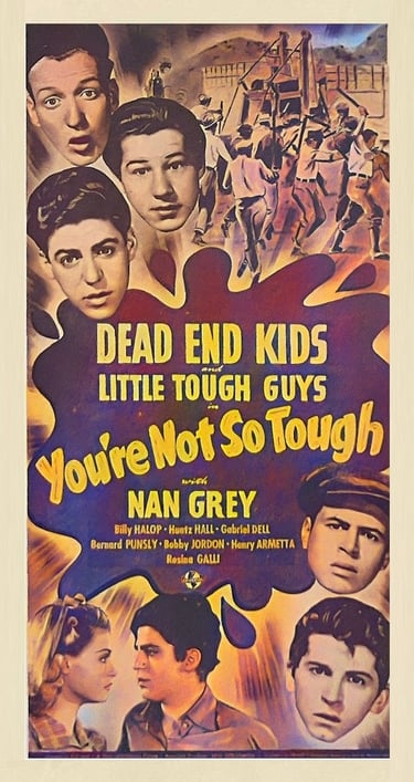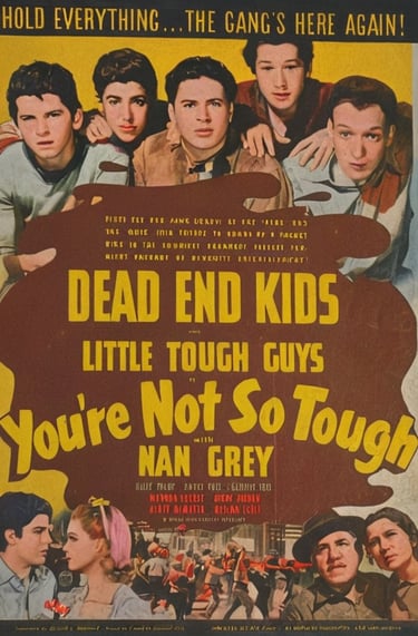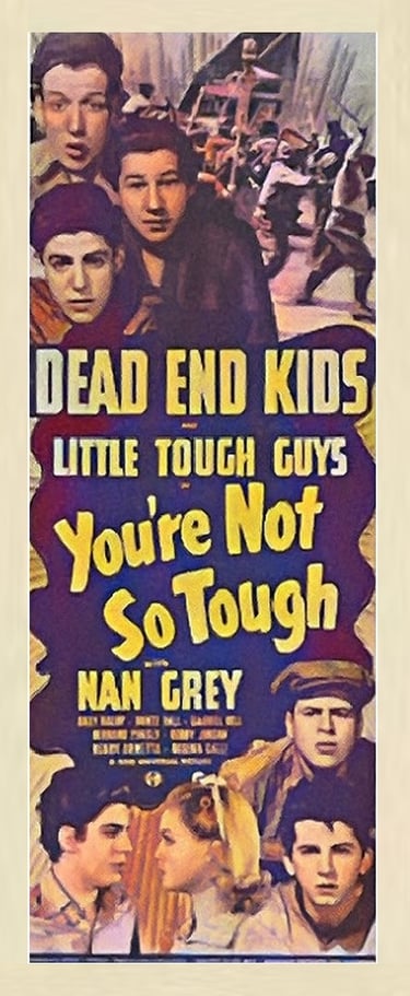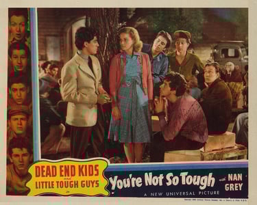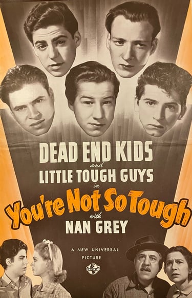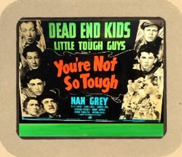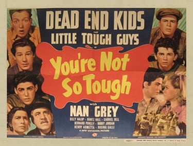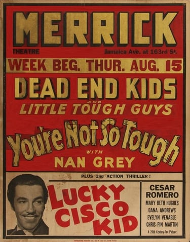 The rare 1940 double-bill release ("Plus second action thriller!") of You're Not So Tough, the 1940 Joe May New York City juvenile delinquent crime thriller starring The Dead End Kids and The Little Tough Guys (before this, some of the Dead End Kids had split off into a separate group called "The Little Tough Guys", but they joined back together for this movie; including Billy Halop, Huntz Hall, Bobby Jordan, and Gabriel Dell), Nan Grey, Bernard Punsly, Henry Armetta, Rosina Galli AND Lucky Cisco Kid, the 1940 H. Bruce Humberstone cowboy western ("A rival bandit steals his name! A crooked judge frames him! A senorita crosses him up!"; "Based on the character 'The Cisco Kid' created by O. Henry") starring Cesar Romero (in the title role as The Cisco Kid), Mary Beth Hughes, Dana Andrews, Evelyn Venable, and Chris-Pin Martin.