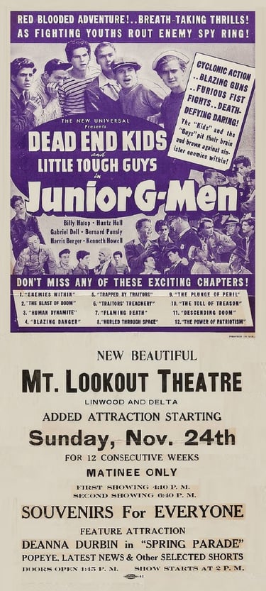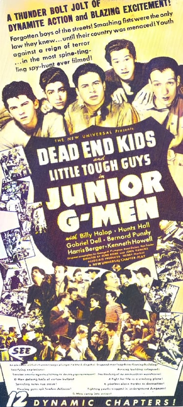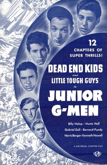 Junior G-Men is a 1940 Universal film serial. It was Universal's 116th serial (and the 48th with sound) of their total of output of 137. The serial is one of the three serials starring "The Dead End Kids and Little Tough Guys" who were under contract to Universal at the time. The plot of Junior G-Men is a pre-World War II G-Man story about fifth columnists in the United States, with the FBI joining forces with youth to save the country.