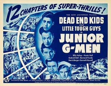 Junior G-Men is a 1940 Universal film serial. It was Universal's 116th serial (and the 48th with sound) of their total of output of 137. The serial is one of the three serials starring "The Dead End Kids and Little Tough Guys" who were under contract to Universal at the time. The plot of Junior G-Men is a pre-World War II G-Man story about fifth columnists in the United States, with the FBI joining forces with youth to save the country.