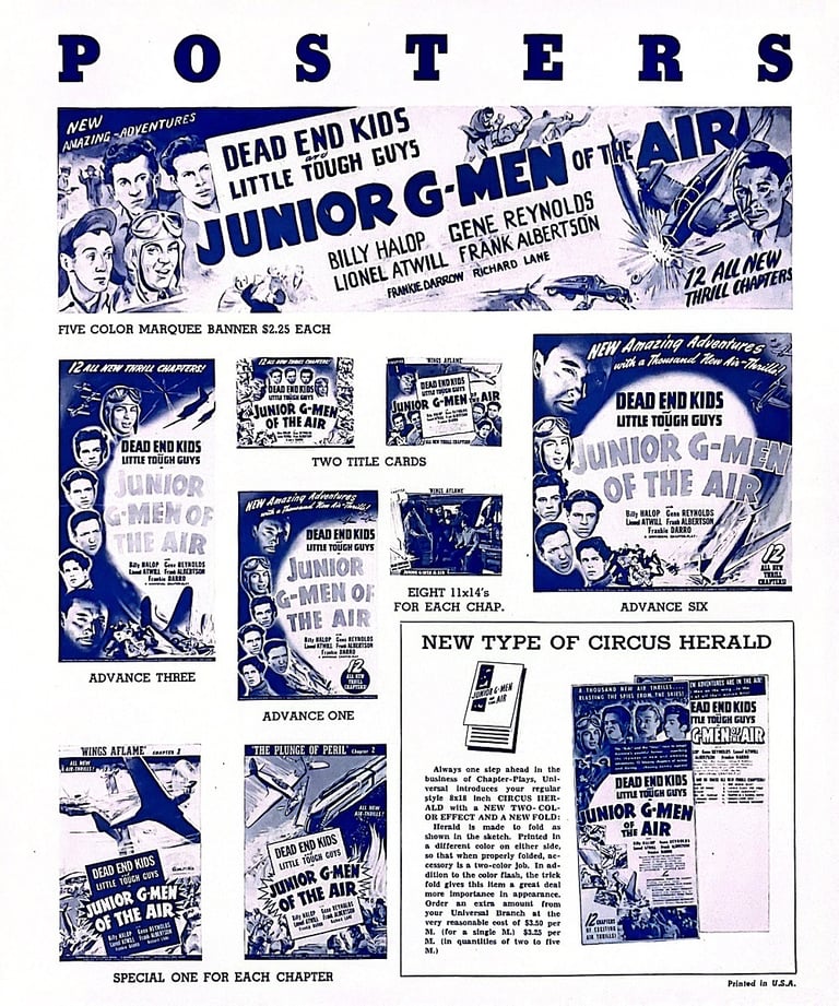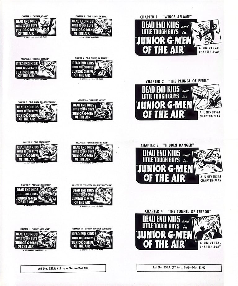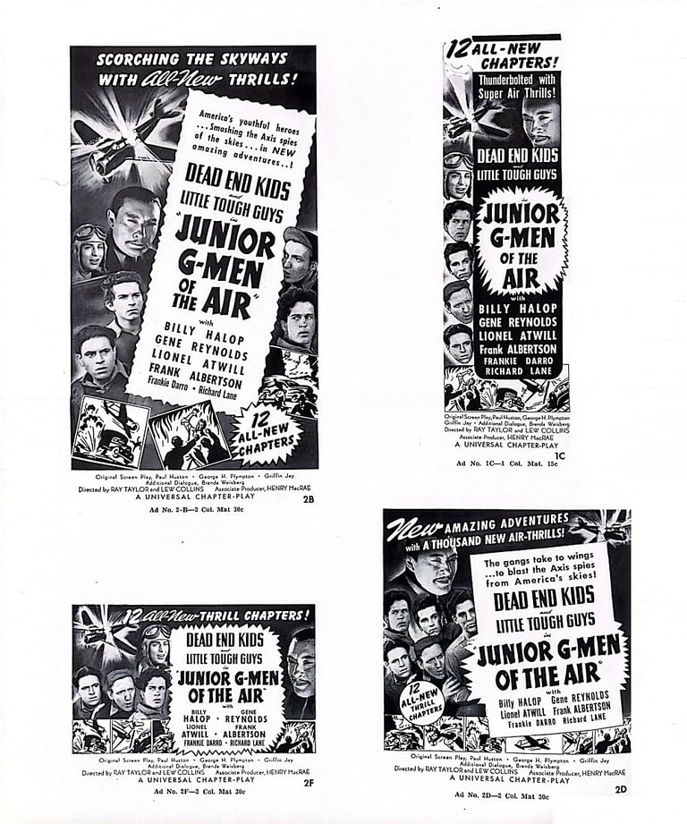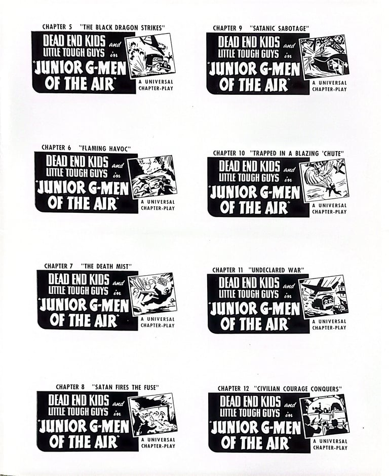 Junior G-Men of the Air is a 1942 Universal film serial. It was Universal's 55th with sound and one of the three serials starring "The Dead End Kids and Little Tough Guys" who were under contract to Universal at the time. This was the teen stars' third and final serial, after Junior G-Men (1940) and Sea Raiders (1941). The plot of Junior G-Men of the Air is when a group of youthful flying enthusiasts join the "Junior G-Men" to help break up a planned attack on the United States.