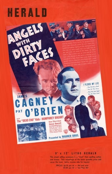 Angels with Dirty Faces is a 1938 American crime drama film directed by Michael Curtiz for Warner Brothers. It stars James Cagney, Pat O'Brien, The Dead End Kids, Humphrey Bogart, Ann Sheridan, and George Bancroft. The screenplay was written by John Wexley and Warren Duff based on the story by Rowland Brown. The film chronicles the relationship of the notorious gangster William "Rocky" Sullivan with his childhood friend and now-priest Father Jerry Connolly. After spending three years in prison for armed robbery, Rocky intends to collect $100,000 from his co-conspirator Jim Frazier, a mob lawyer. All the while, Father Connolly tries to prevent a group of youths from falling under Rocky's influence.