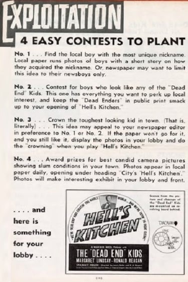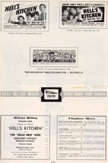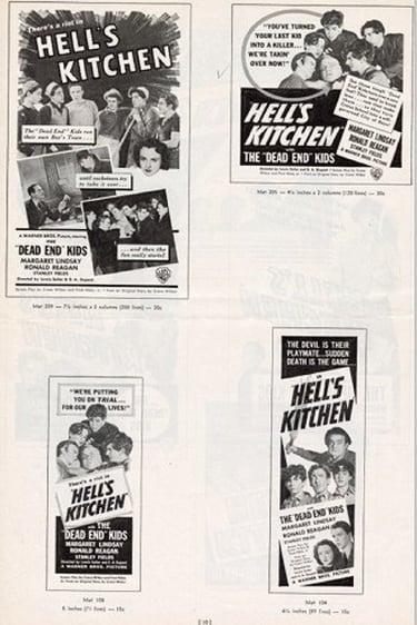 Hell's Kitchen is a 1939 thriller Warner Bros. film starring The Dead End Kids and Ronald Reagan.