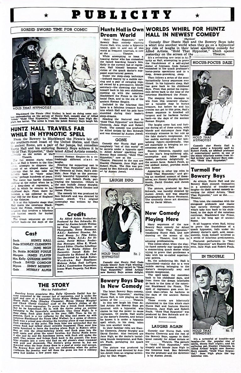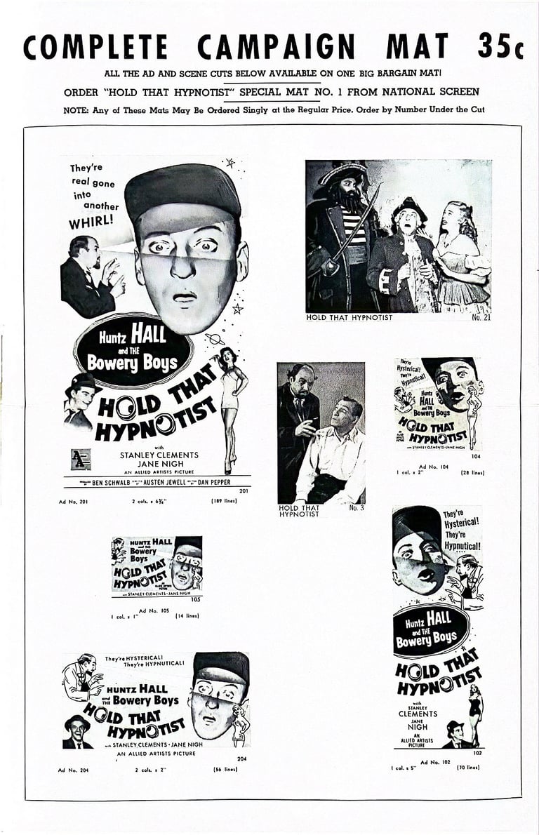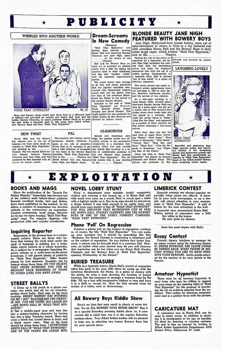 Hold That Hypnotist is a 1957 American comedy film starring the comedy team of The Bowery Boys. The film was released on March 10, 1957 by Allied Artists and is the forty-fourth film in the series. Former assistant director Austen Jewell was now given the chance to direct. The film is a topical satire of hypnotist Morey Bernstein's best-selling book The Search for Bridey Murphy and its film adaptation.