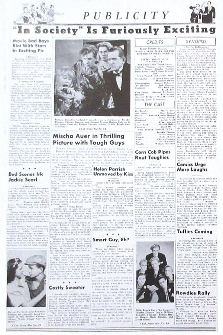 Little Tough Guys in Society is a 1938 Universal Studios film that starred several of the Dead End Kids. It was the second film that Universal made in their series and the first of three that they made without any of the original Dead End Kids.