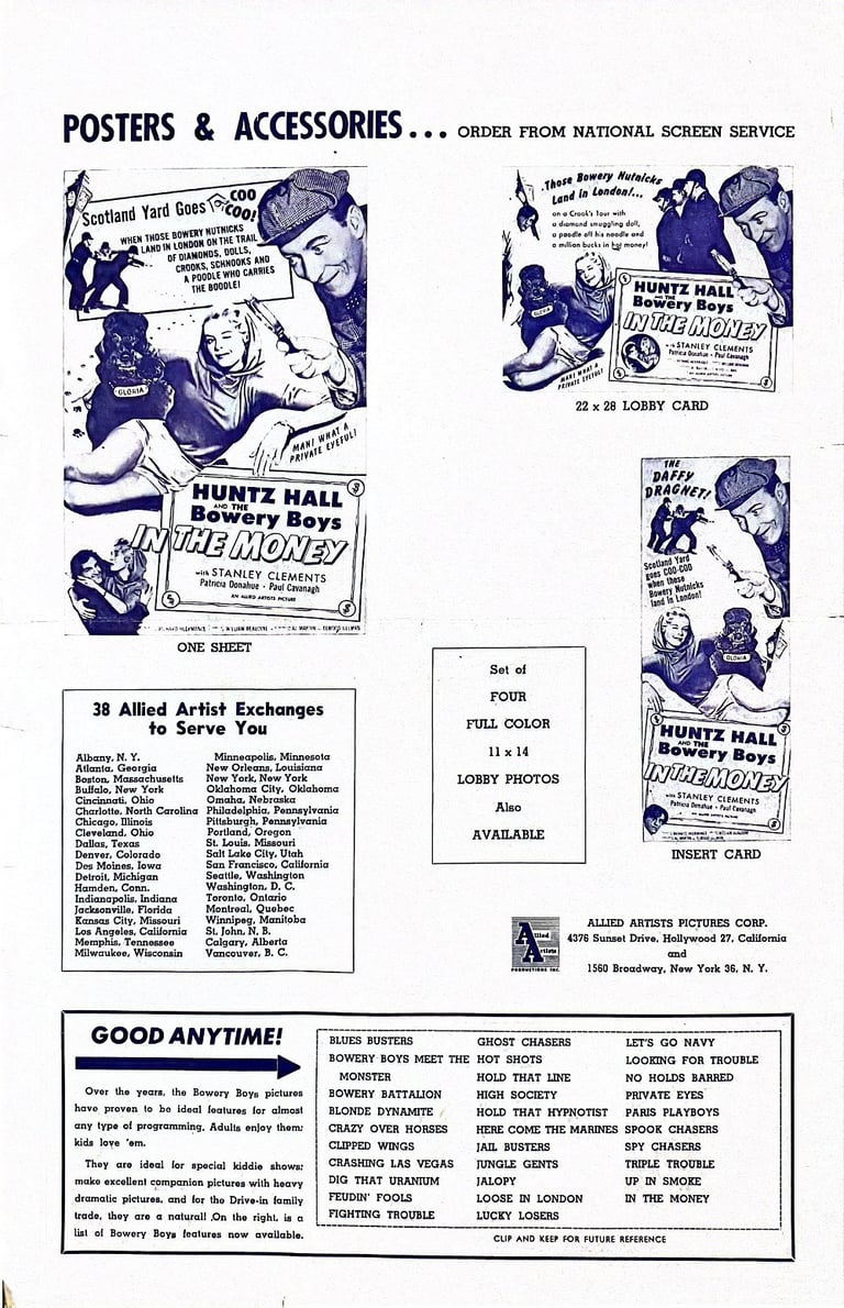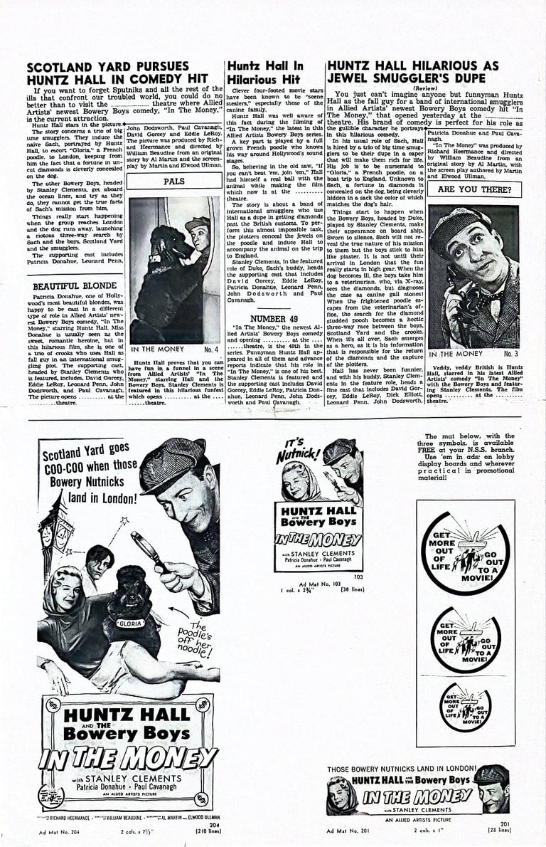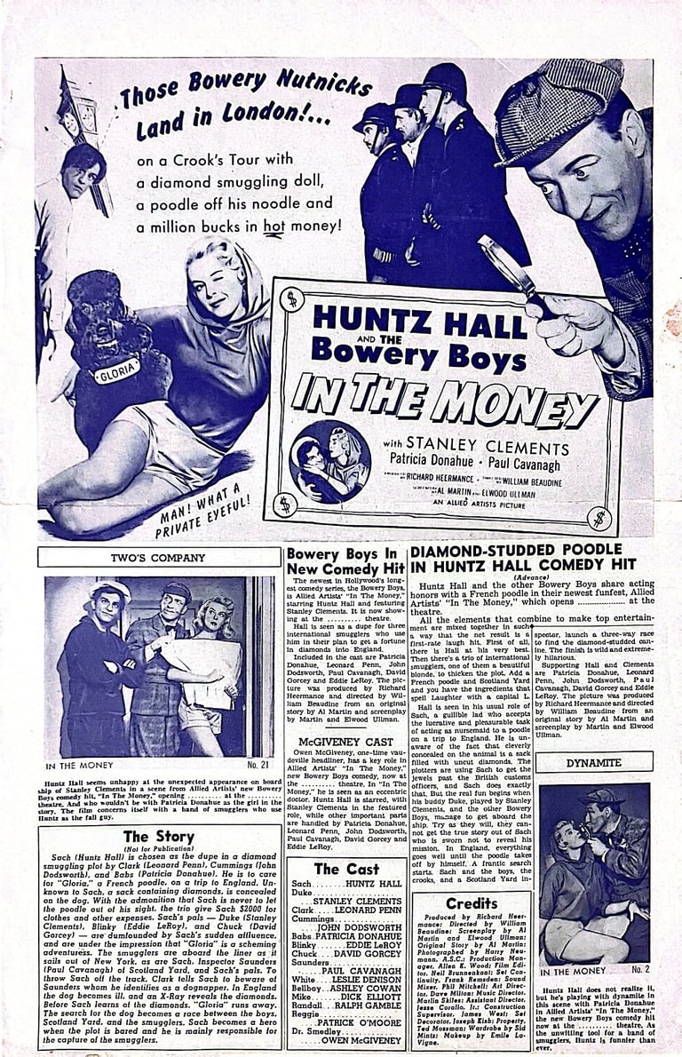 In the Money is a 1958 American comedy film directed by William Beaudine and starring The Bowery Boys. The film was released on February 16, 1958, by Allied Artists Pictures and is the 48th and final film in the series. It was directed by William Beaudine and written by Al Martin and Elwood Ullman.