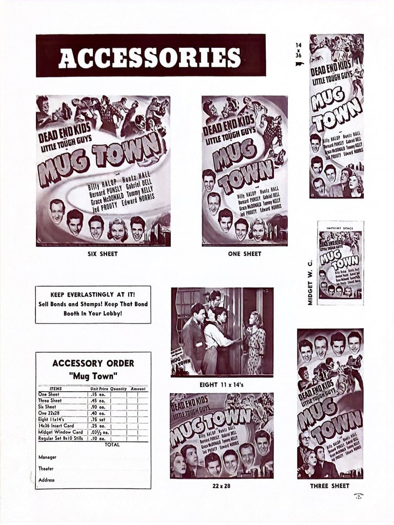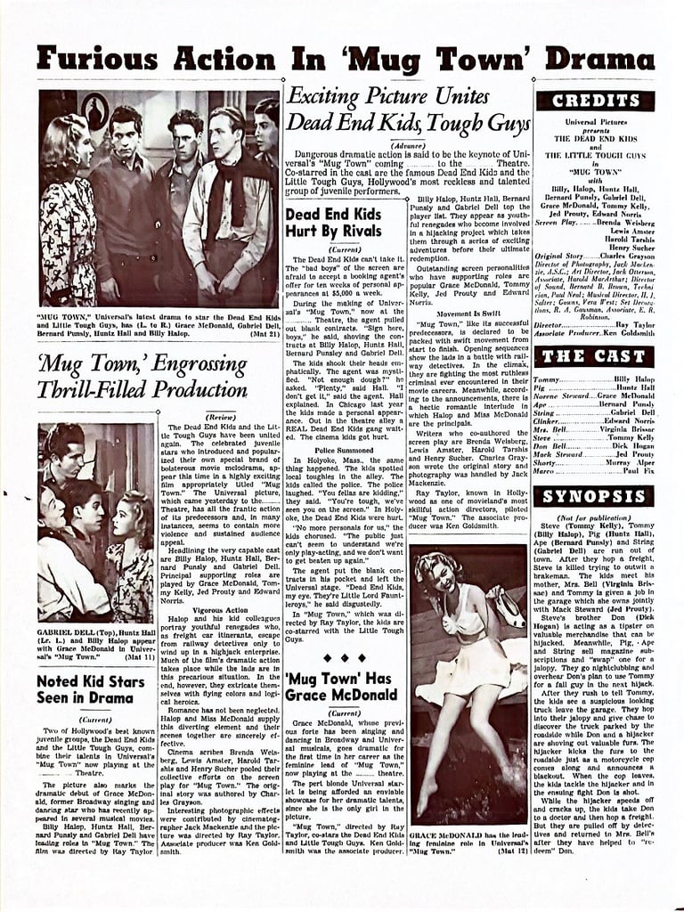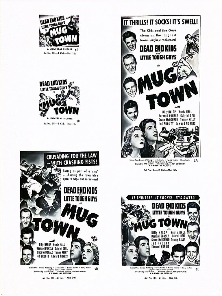 Mug Town is a 1942 Universal film starring the Dead End Kids and the Little Tough Guys.