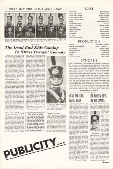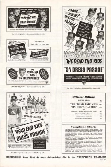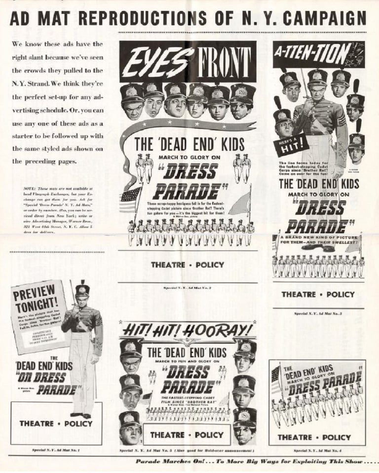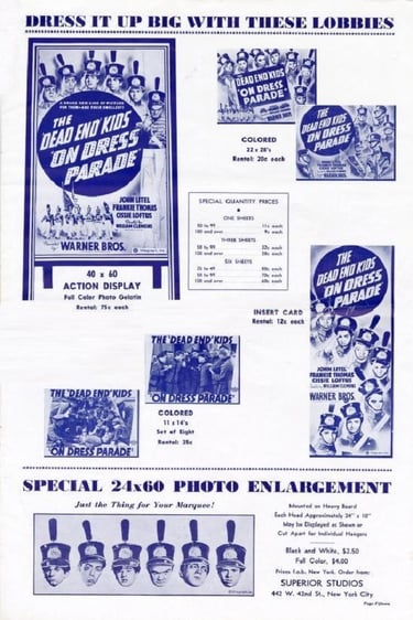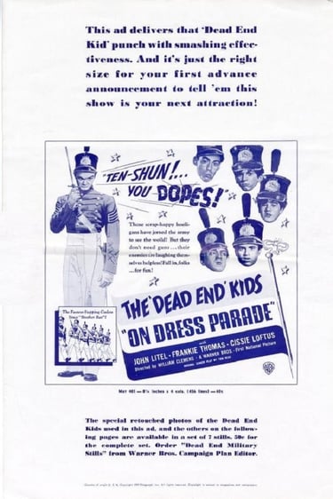 The 'Dead End' Kids "On Dress Parade" is a 1939 Warner Bros. film that marked the first time The Dead End Kids headlined a film without any other well-known actors.