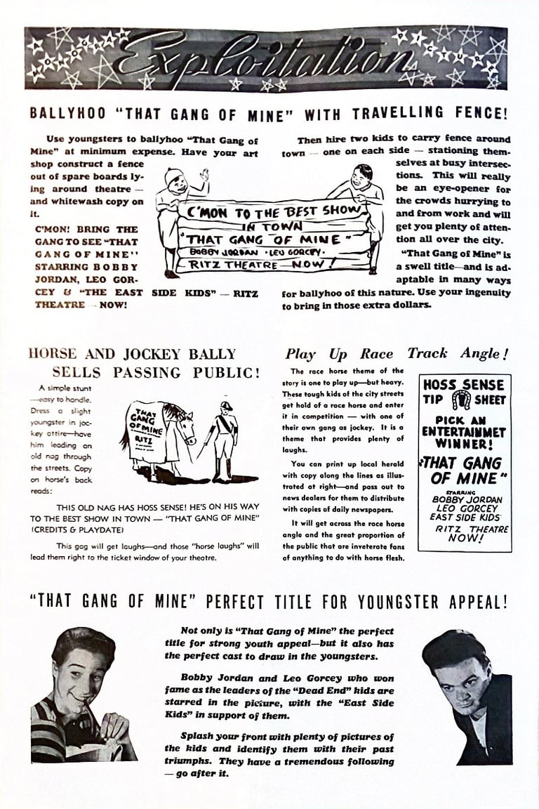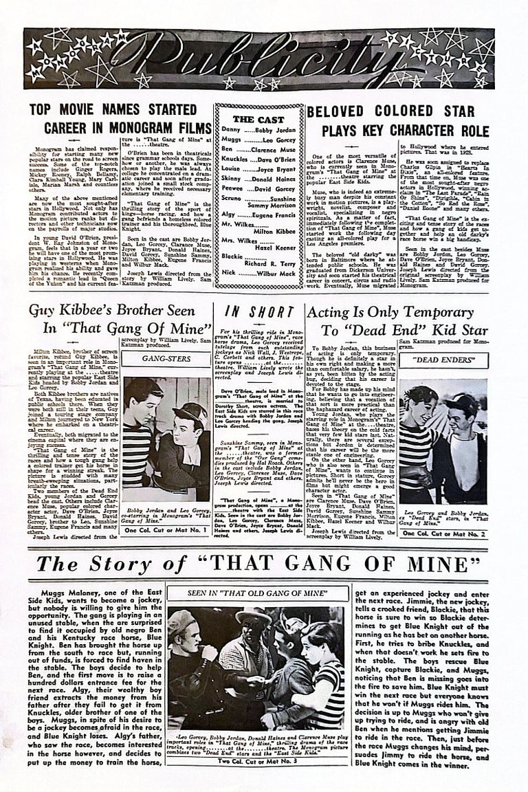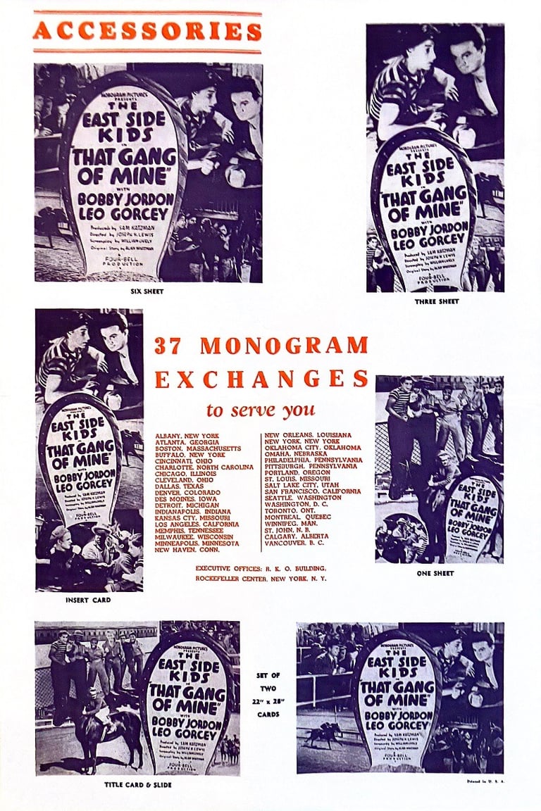 That Gang of Mine is a 1940 film directed by Joseph H. Lewis and starring Leo Gorcey and Bobby Jordan. It is the third film in the East Side Kids series.