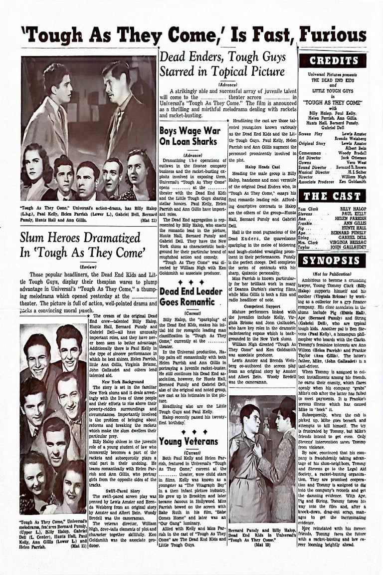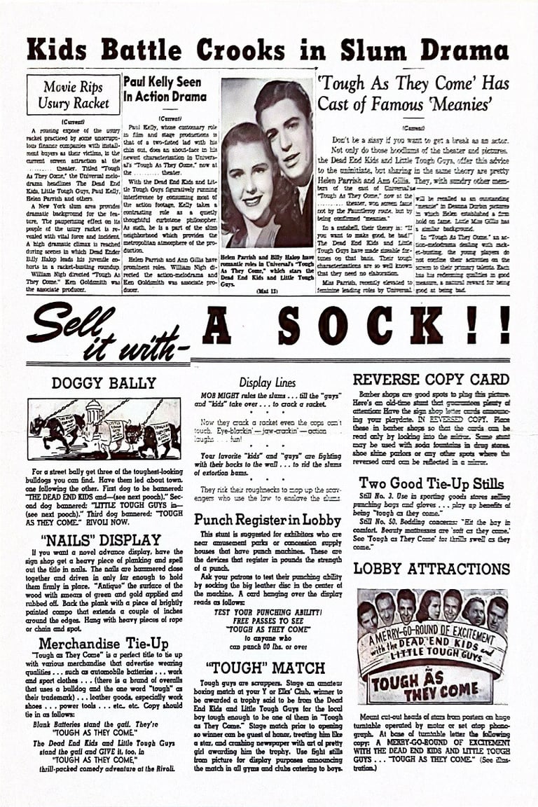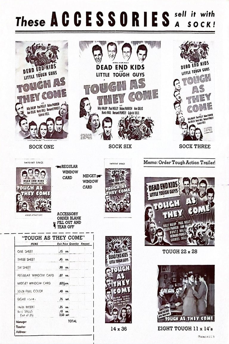 Tough as They Come is a 1942 Universal film directed by William Nigh and starring the Dead End Kids and the Little Tough Guys.