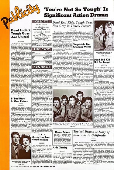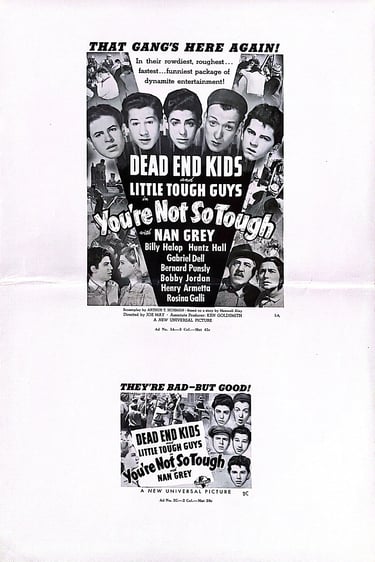 You're Not So Tough is a 1940 Universal Studios drama film directed by Joe May and starring Dead End Kids and the Little Tough Guys and was the first in the series where Billy Halop and Huntz Hall weren't billed in the opening credits before the Dead End Kids name.