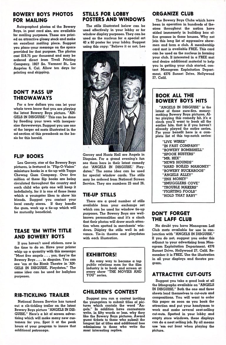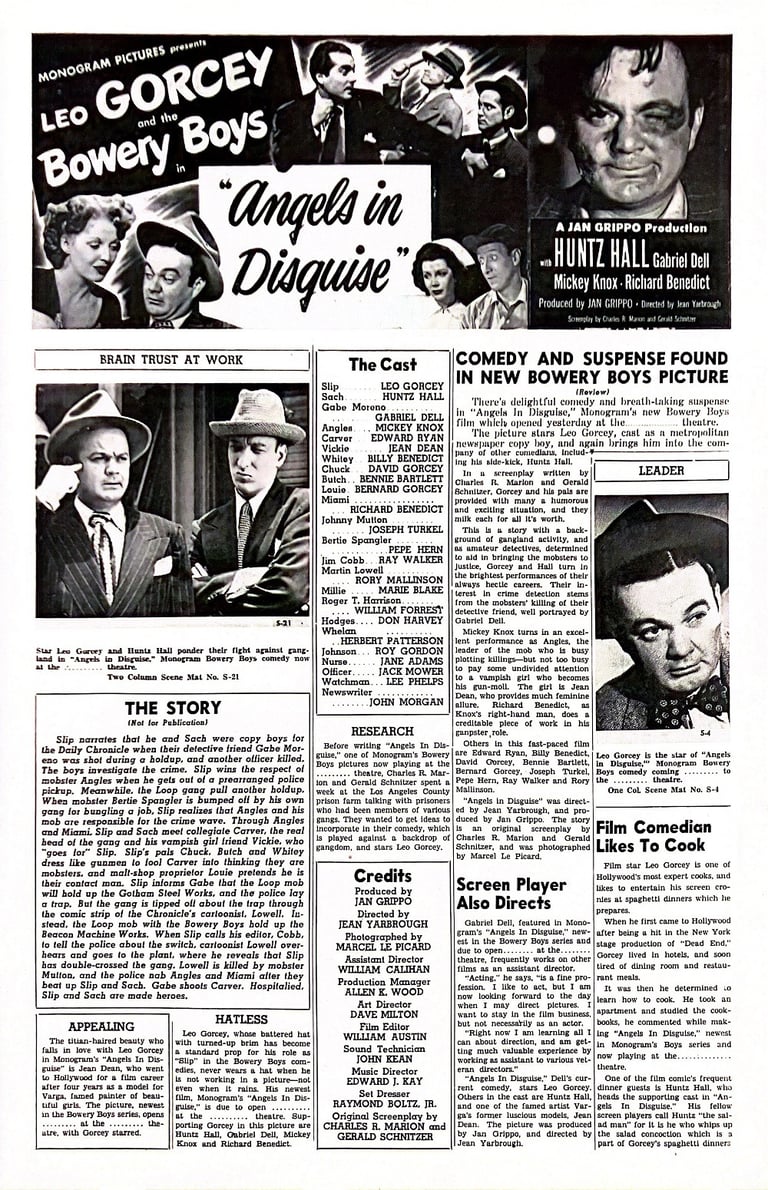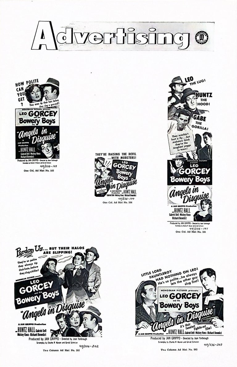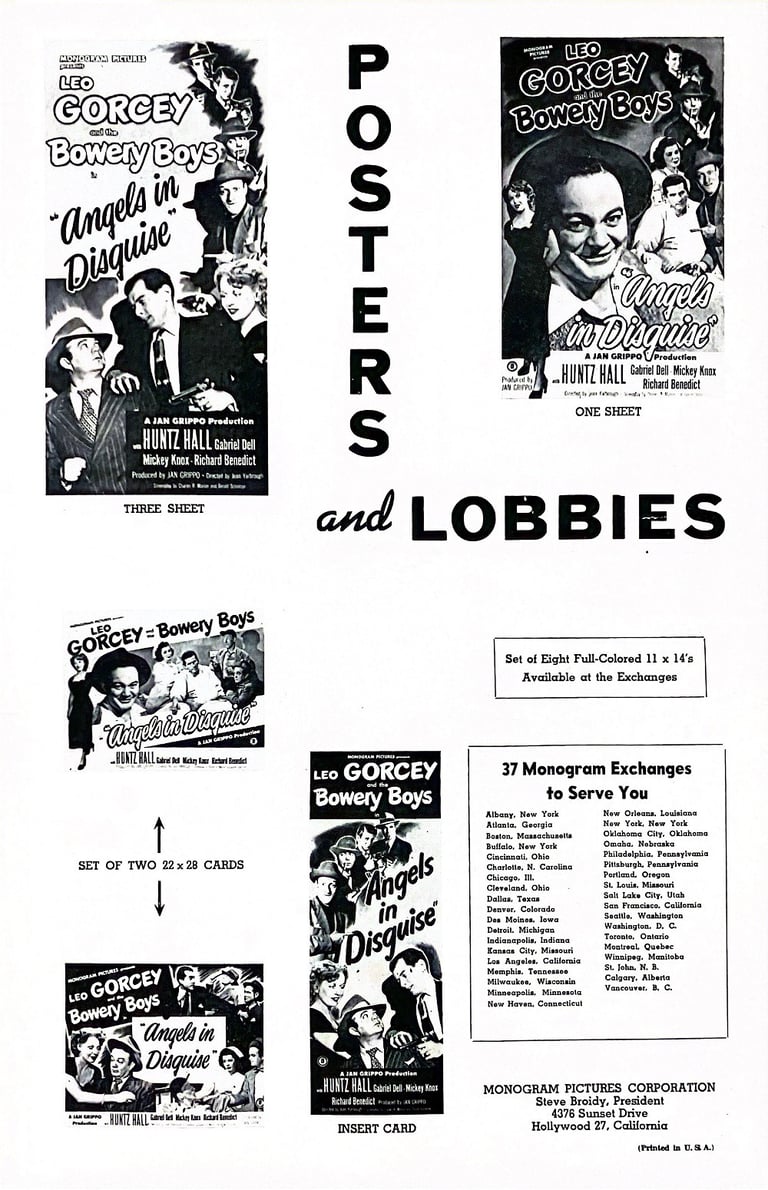 Angels in Disguise is a 1949 comedy film directed by Jean Yarbrough and starring The Bowery Boys. The film was released on September 11, 1949, by Monogram Pictures and is the fifteenth film in the series.