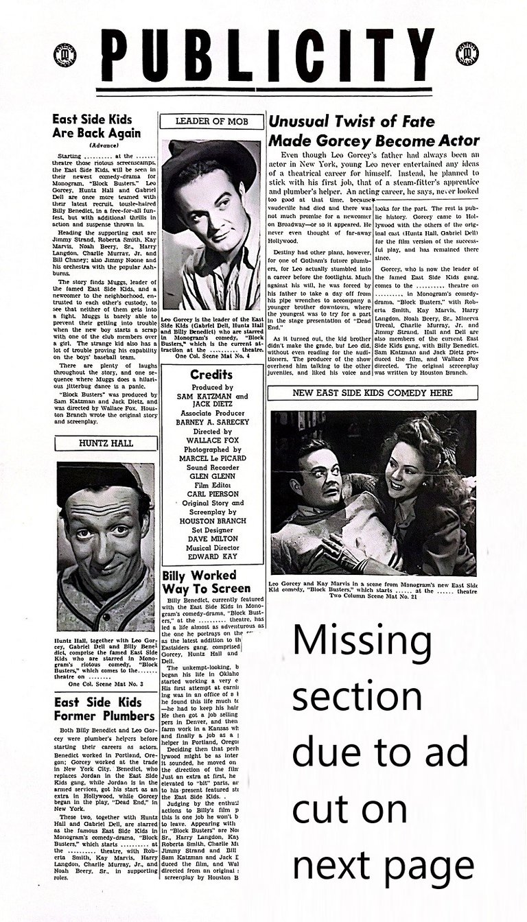 This was one of the few East Side Kids movies in which Gabriel Dell plays a member of the gang, and where Billy Benedict plays a different character. It is Bill Chaney's only film as an East Side Kid and the last film released in Harry Langdon's lifetime.