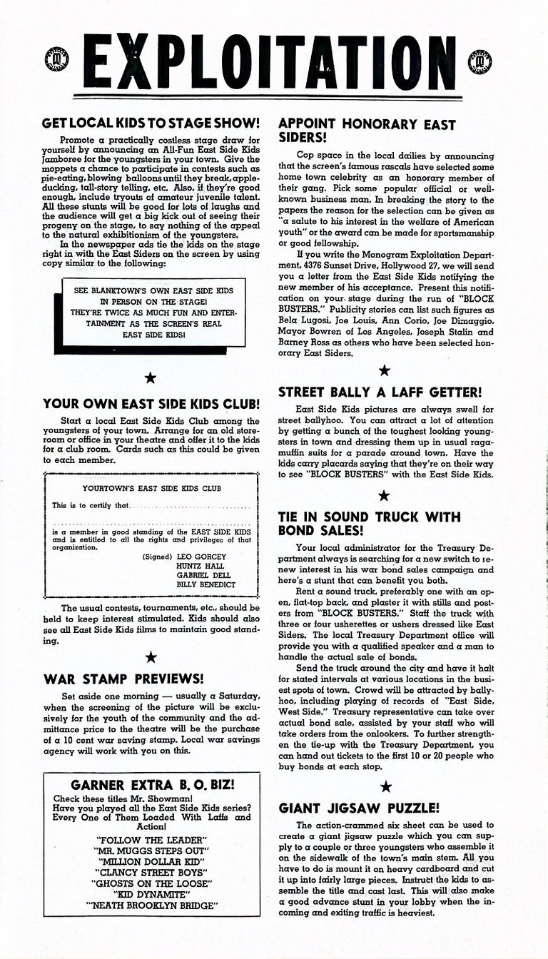 Block Busters is a 1944 American comedy film directed by Wallace Fox and starring the East Side Kids.
