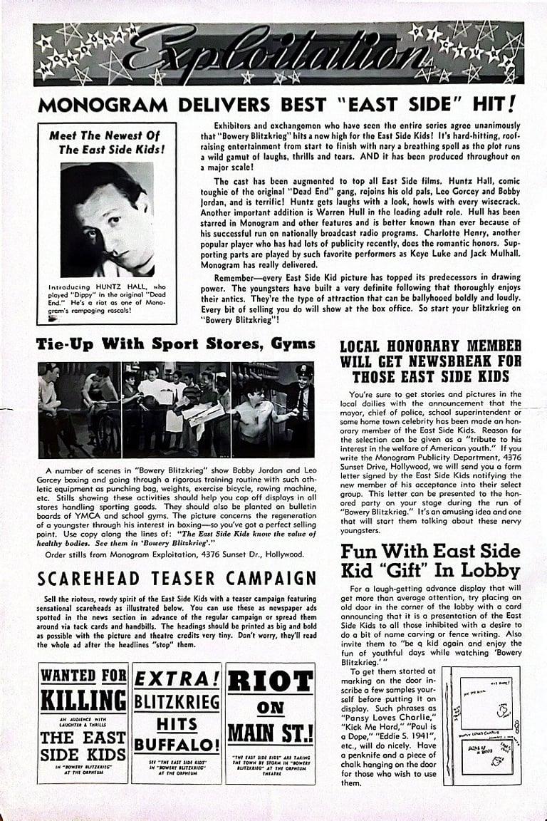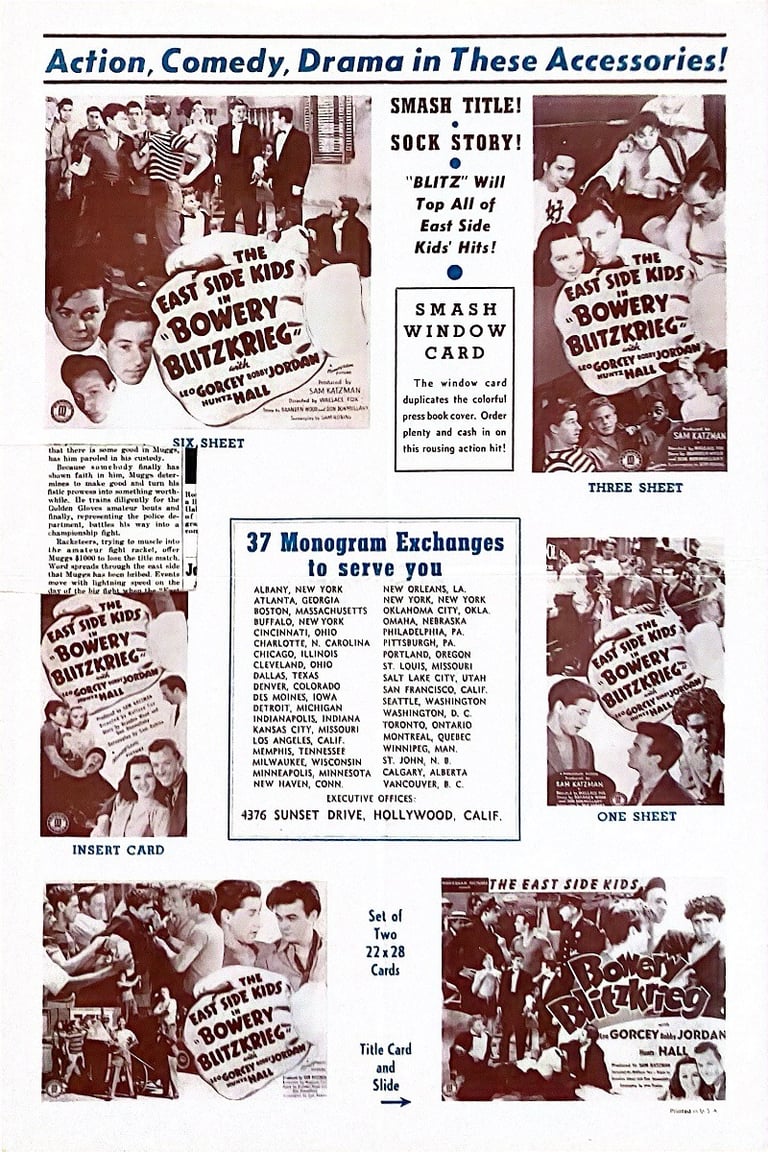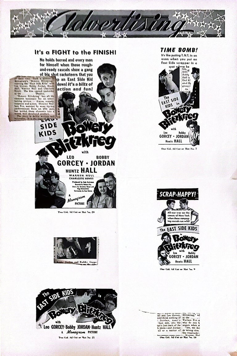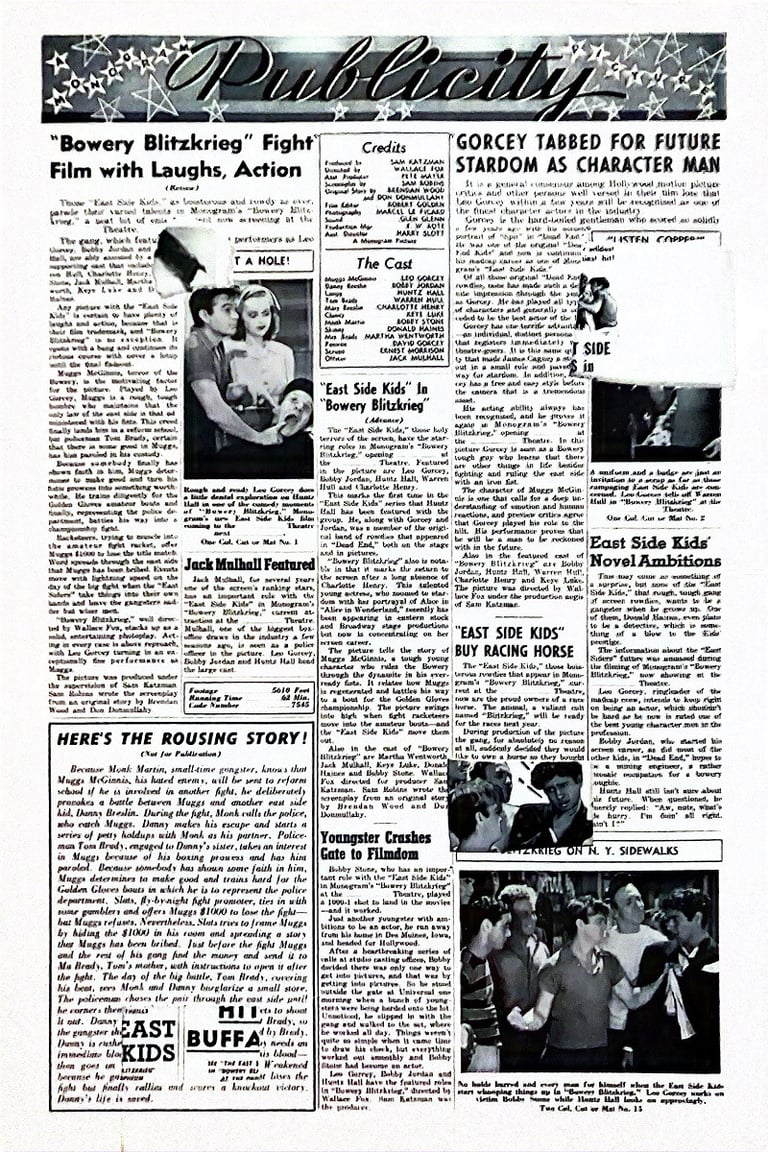 Bowery Blitzkrieg is a 1941 American comedy film directed by Sam Katzman. It is the sixth installment of the East Side Kids series.[1] The film "introduced" Huntz Hall in his first of the East Side Kids film series.