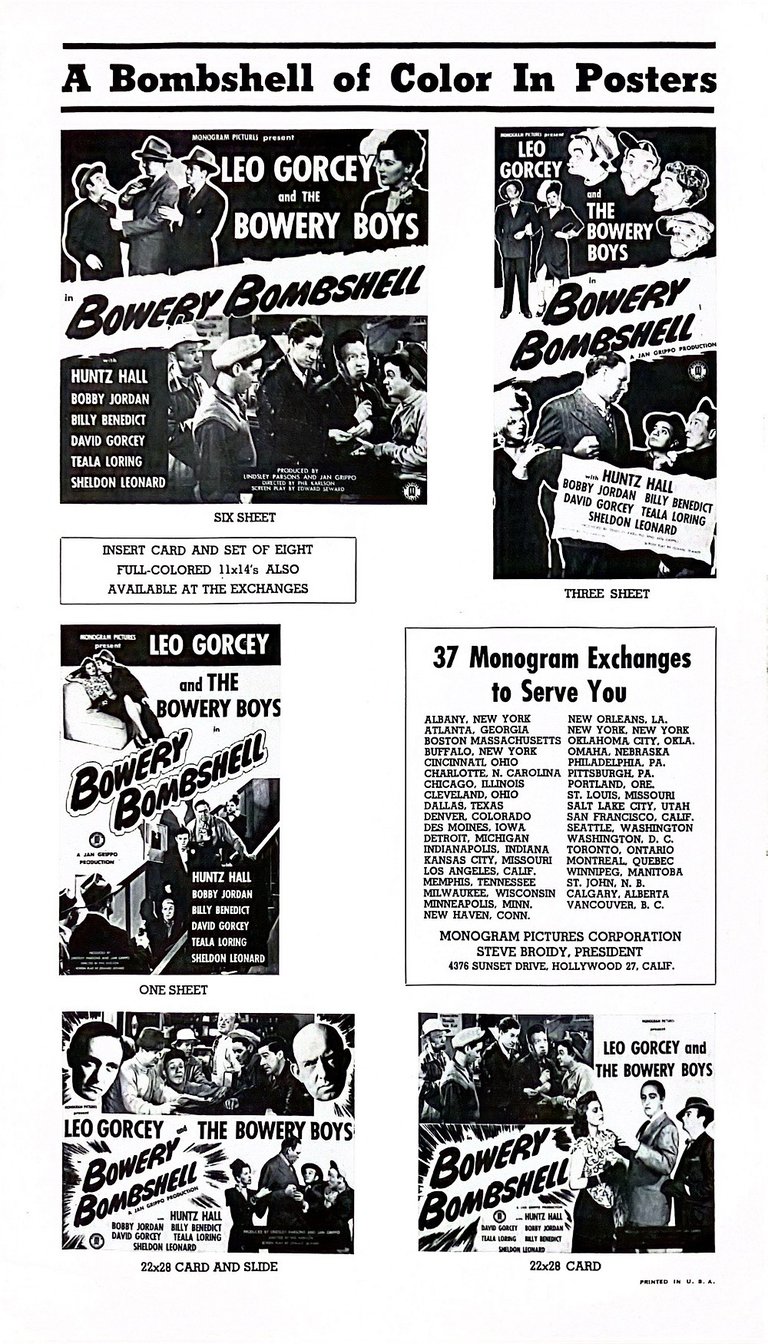 Bowery Bombshell is a 1946 American comedy film directed by Phil Karlson and starring the comedy team of The Bowery Boys. It is the third film in the series and was distributed by Monogram Pictures.