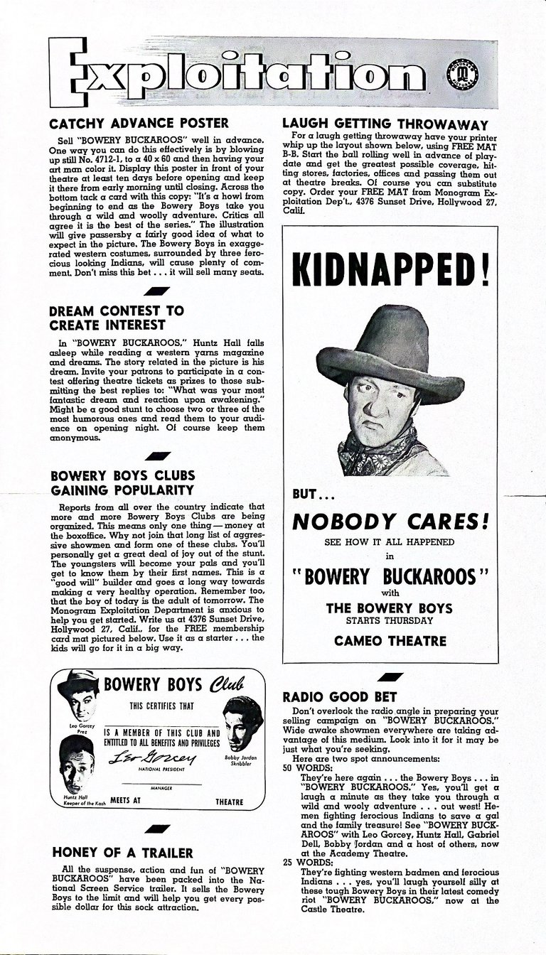 Bowery Buckaroos is a 1947 American comedy film directed by William Beaudine and starring the comedy team of The Bowery Boys. It is the eighth film in the series and the last Bowery Boys film that Bobby Jordan appeared in.