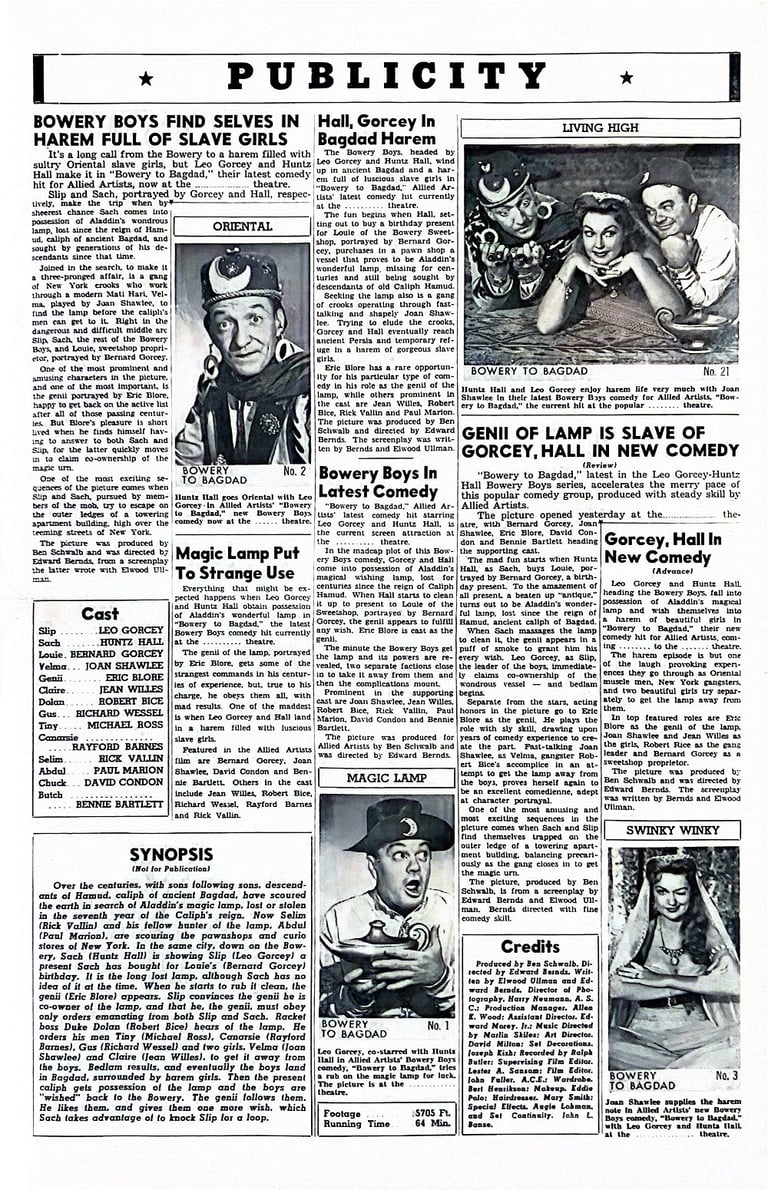 Bowery to Bagdad is a 1955 comedy film starring The Bowery Boys. The film was released on January 2, 1955, by Allied Artists and is the thirty-sixth film in the series.