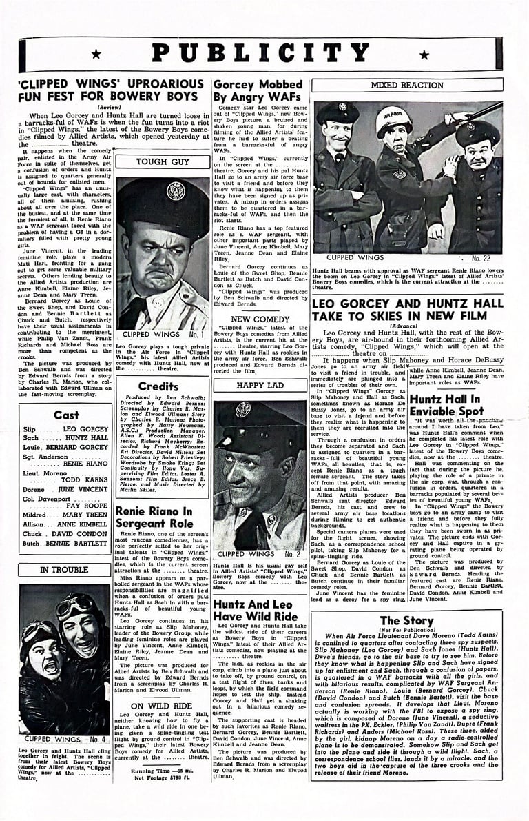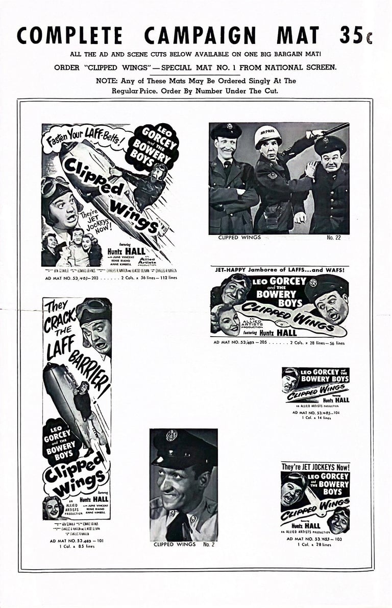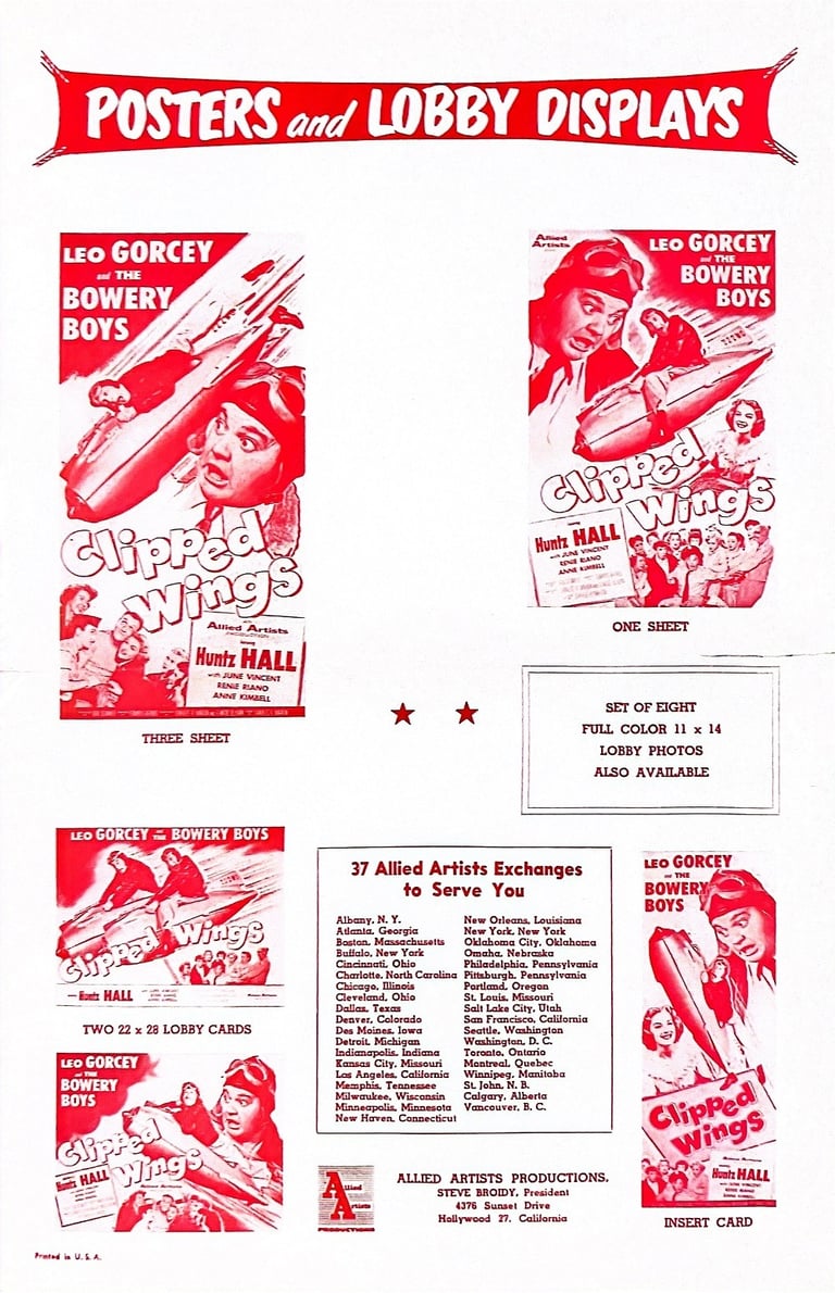 Clipped Wings is a 1953 comedy film starring The Bowery Boys. The film was released on August 14, 1953, by Allied Artists and is the thirty-first film in the series.