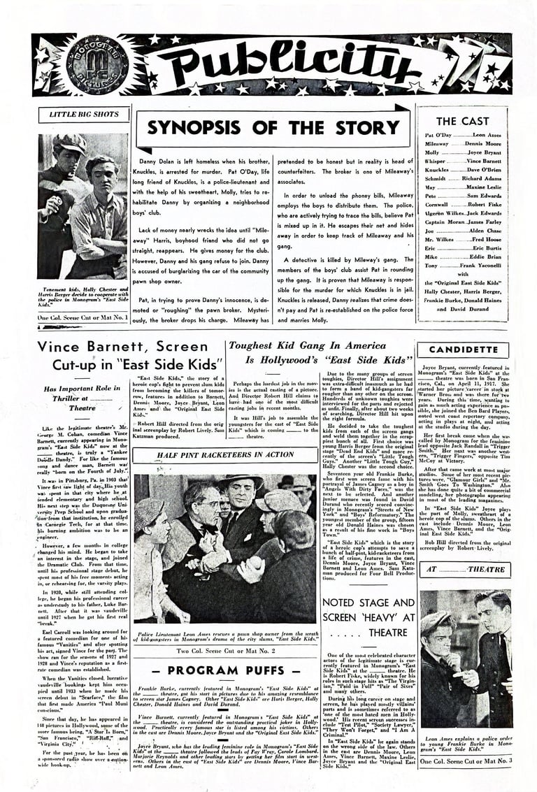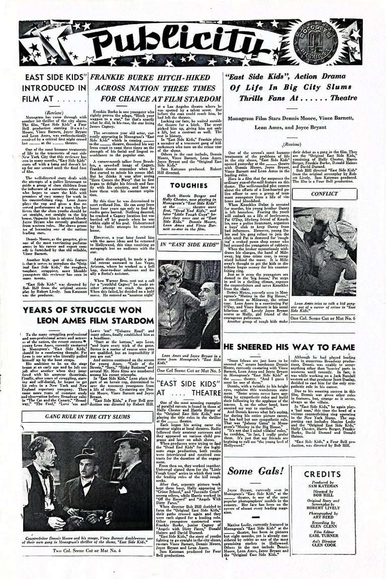 East Side Kids is a 1940 film and the first in the East Side Kids film series. It is the only one not to star any of the original six Dead End Kids. The film was released by producer Sam Katzman. This was also his first project at Monogram Pictures, which he joined shortly after the folding of his company Victory Pictures.