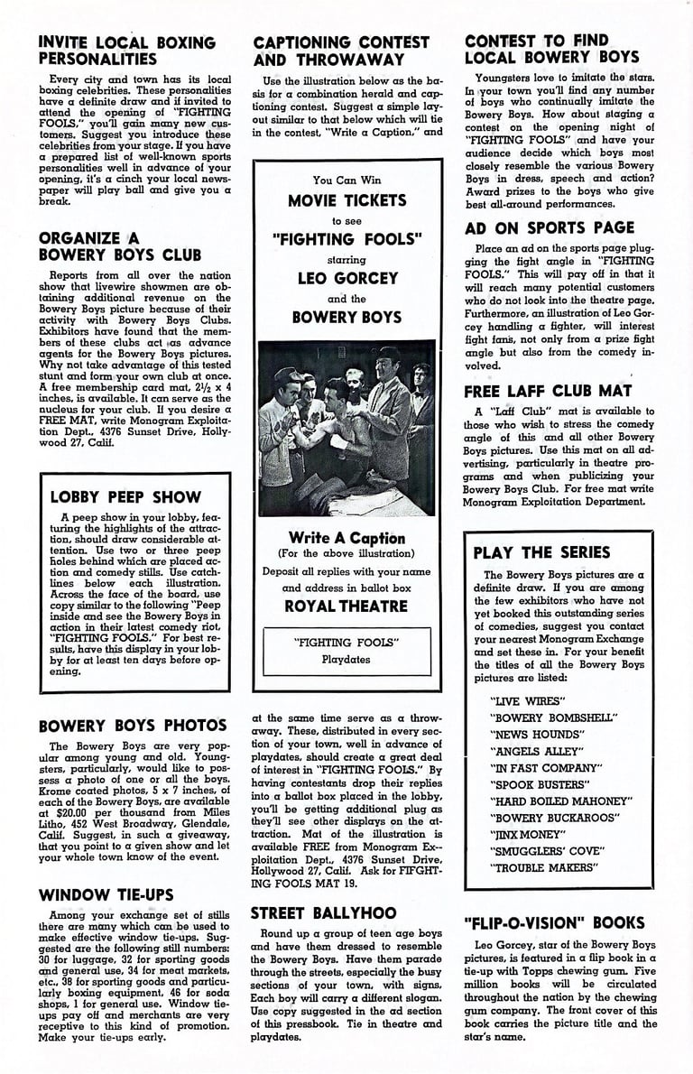 Fighting Fools is a 1949 comedy film starring The Bowery Boys. The film was released on April 17, 1949 by Monogram Pictures and is the thirteenth film in the series.