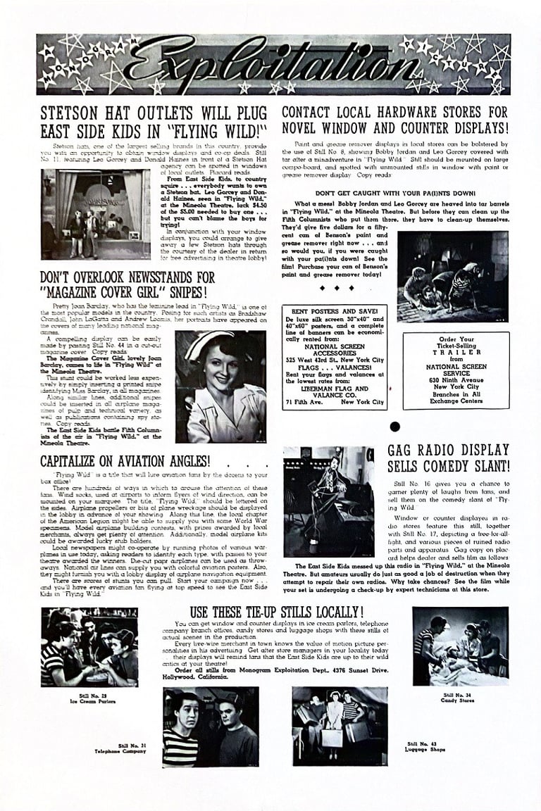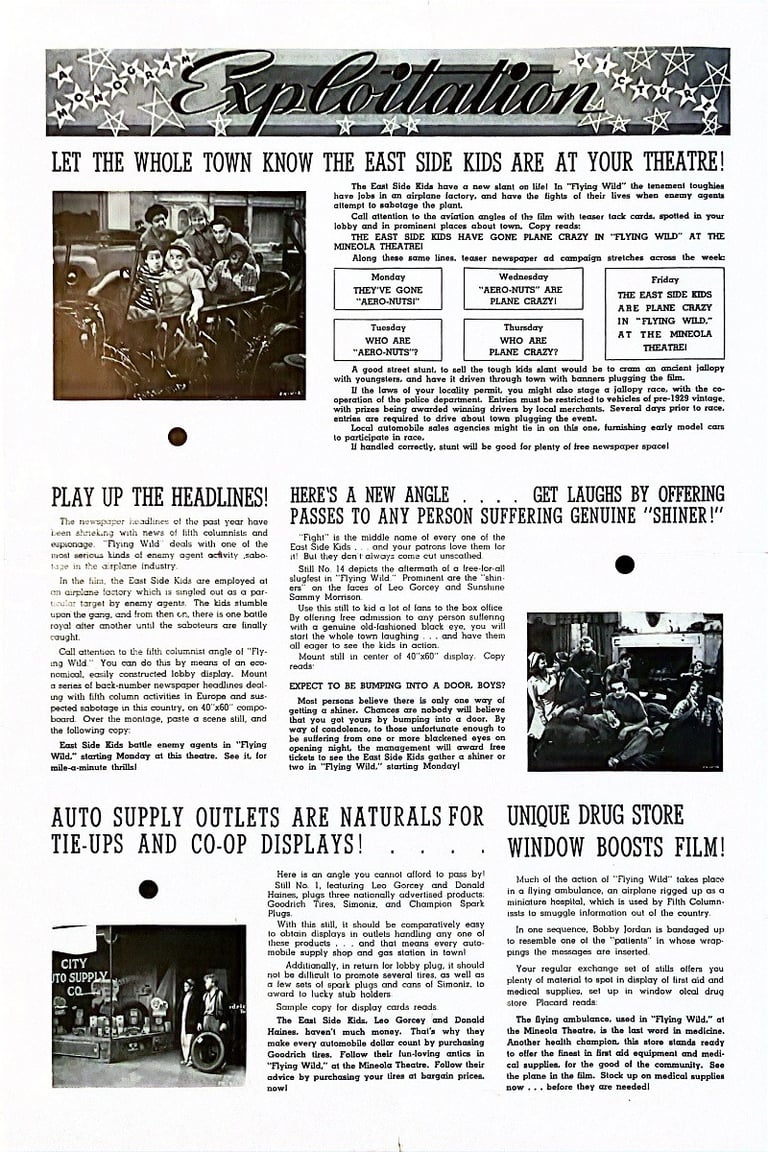 Flying Wild (aka The East Side Kids in Flying Wild and Air Devils) is a 1941 American comedy thriller film directed by the former Chaplin impersonator Billy West, under the pseudonym "William West". It was the fifth of 22 features in the East Side Kids series. The film is the team's first one in the spy film genre. The supporting cast includes Joan Barclay, Dave O'Brien and Herbert Rawlinson.