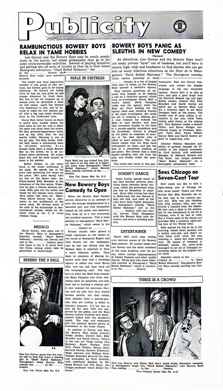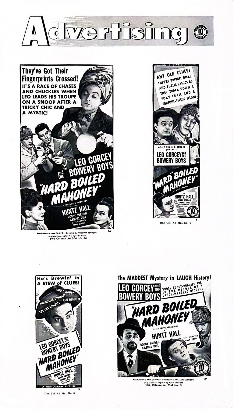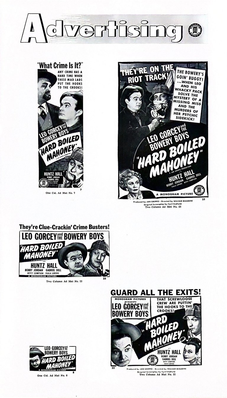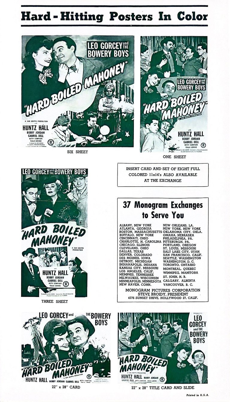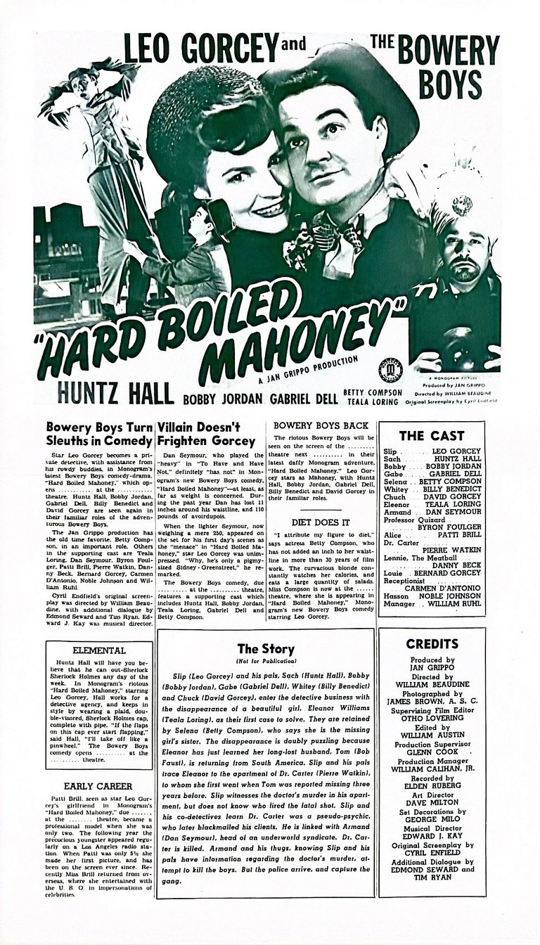 Hard Boiled Mahoney is a 1947 American comedy film directed by William Beaudine and starring the comedy team of the Bowery Boys along with Teala Loring and Betty Compson. It is the sixth film in the series produced by Monogram Pictures.