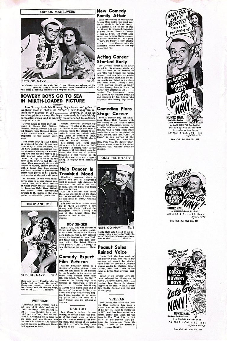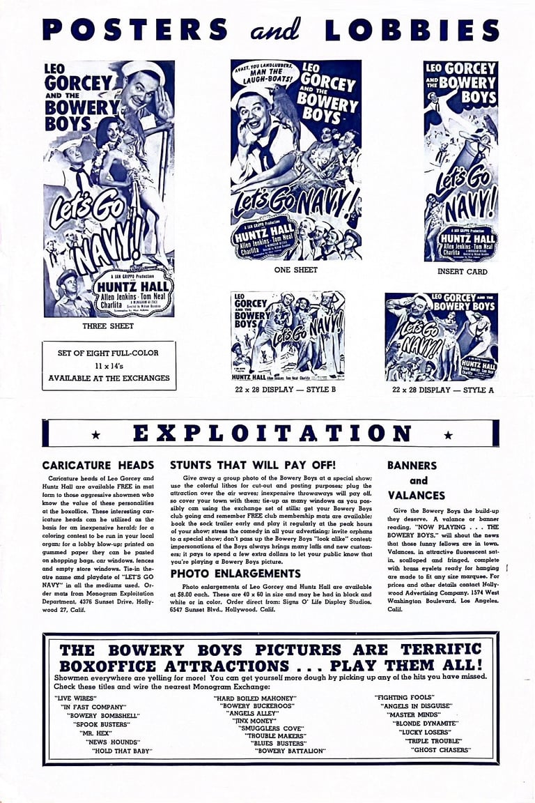 Let's Go Navy! is a 1951 comedy film starring the Bowery Boys, the 23rd film in the series. The film was released on July 29, 1951 by Monogram Pictures.