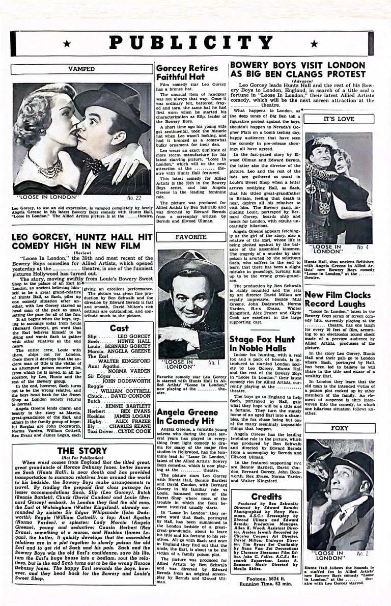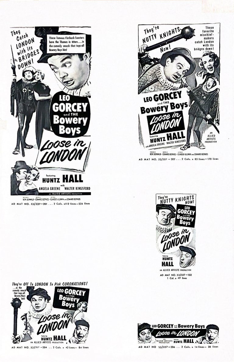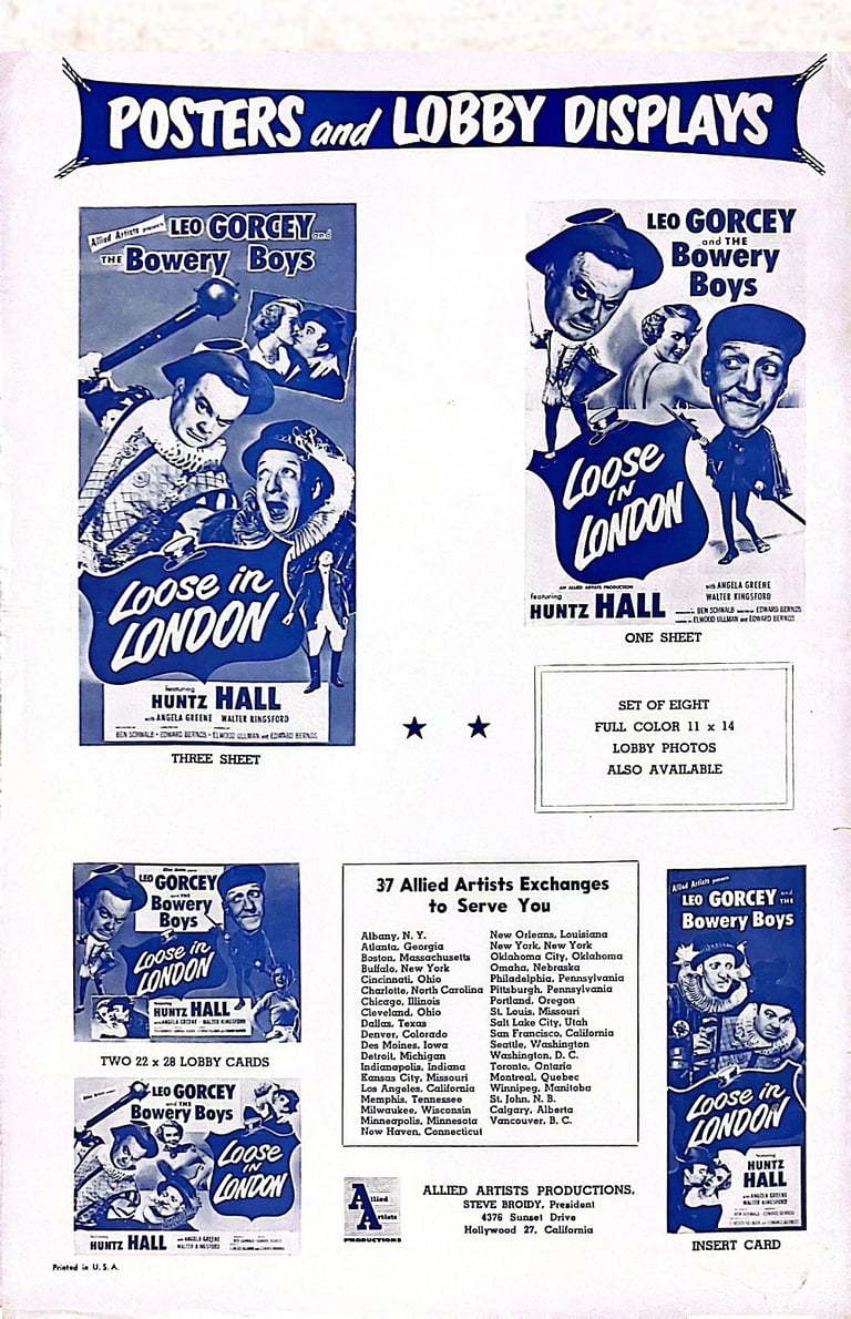 Loose in London is a 1953 American comedy film directed by Edward Bernds and starring The Bowery Boys. The film was released on May 24, 1953, by Allied Artists and is the thirtieth film in the series.