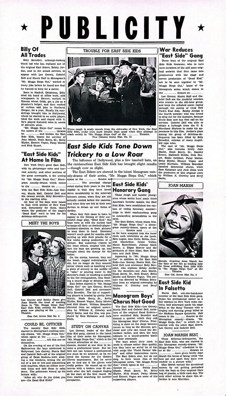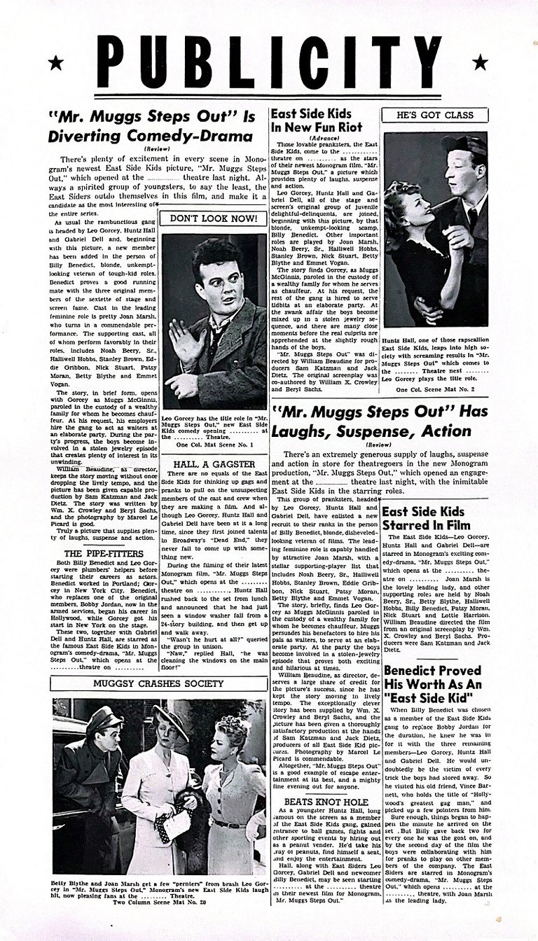 Mr. Muggs Steps Out is a 1943 American comedy film directed by William Beaudine and starring The East Side Kids.