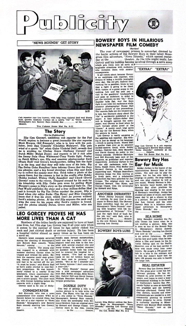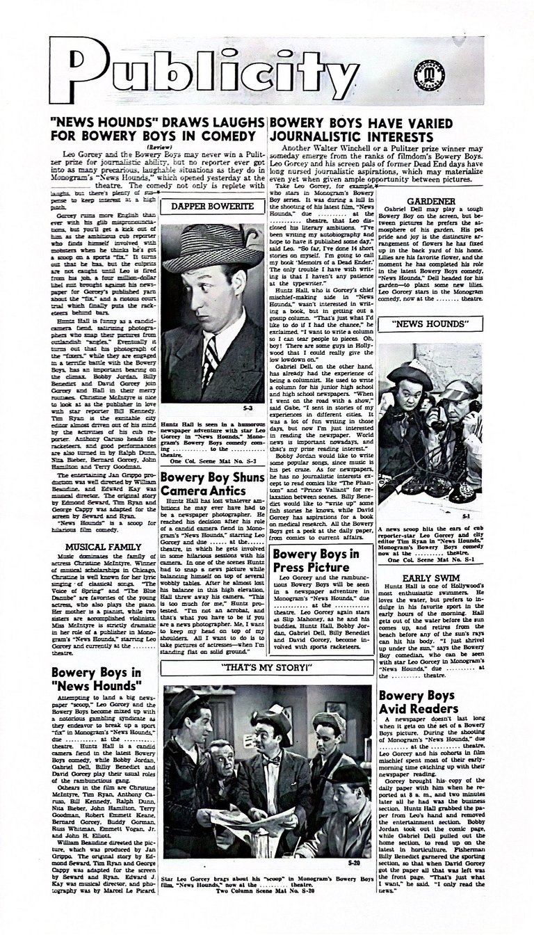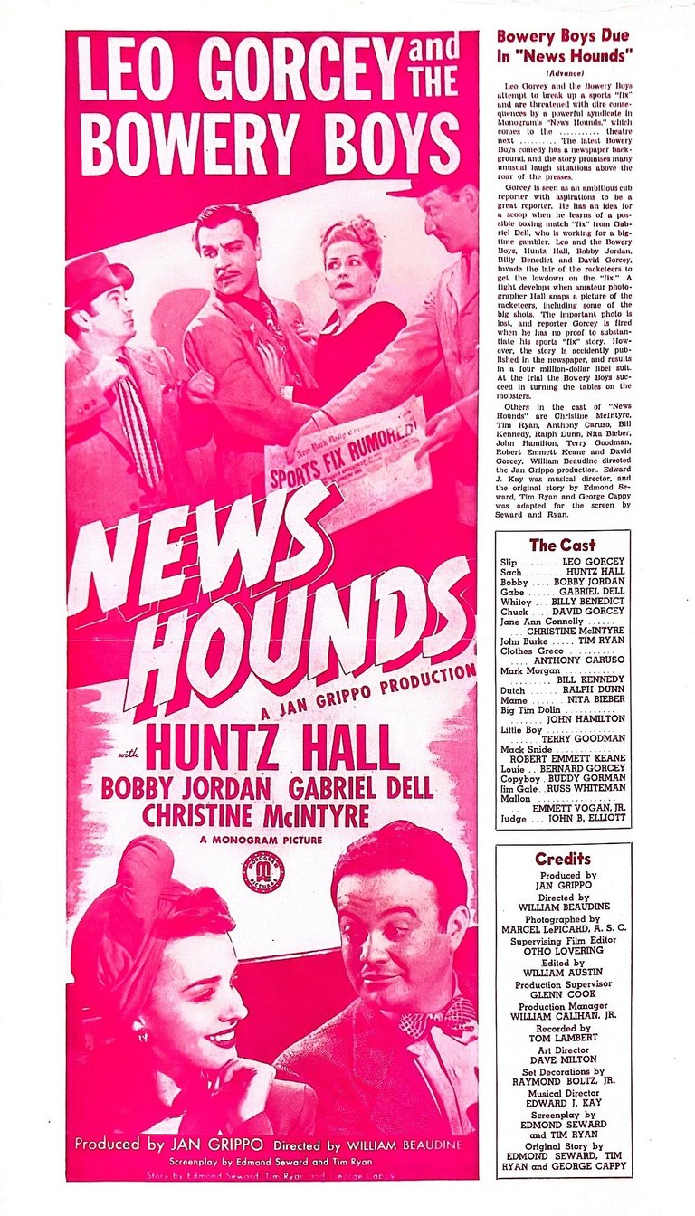 News Hounds is a 1947 American comedy film directed by William Beaudine and starring the comedy team of The Bowery Boys. It is the seventh film in the series produced by Monogram Pictures.
