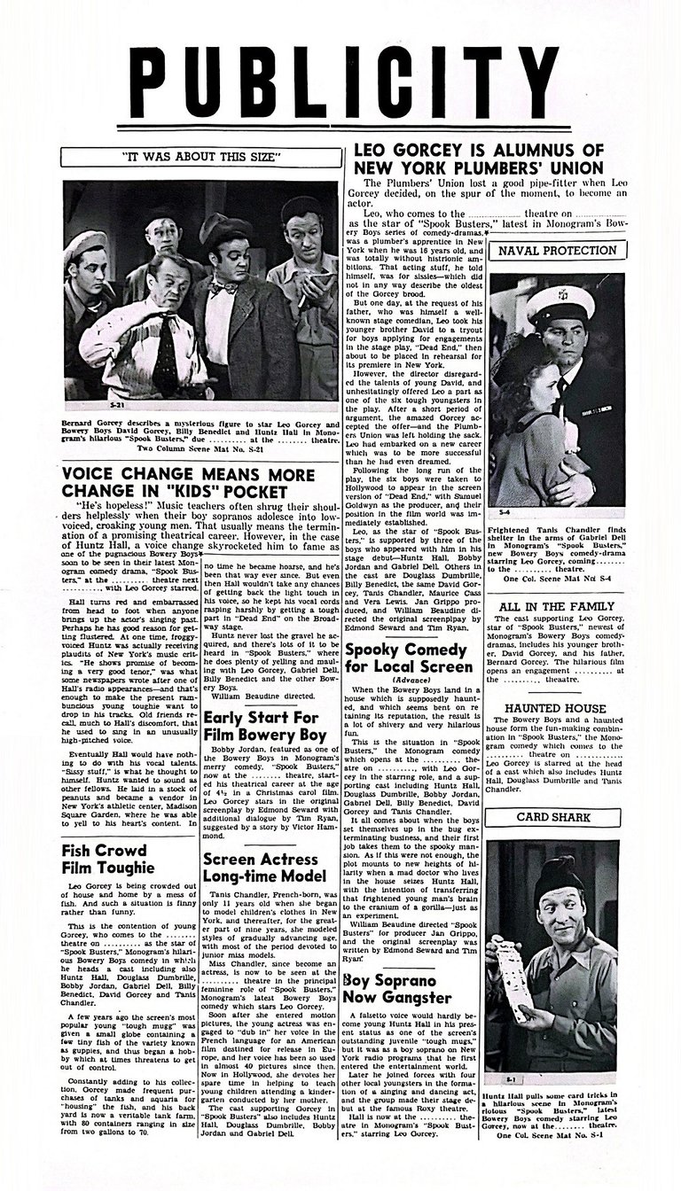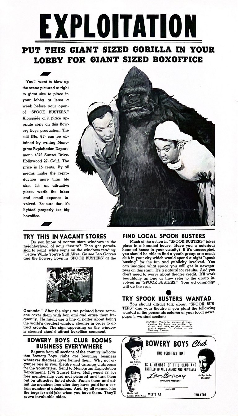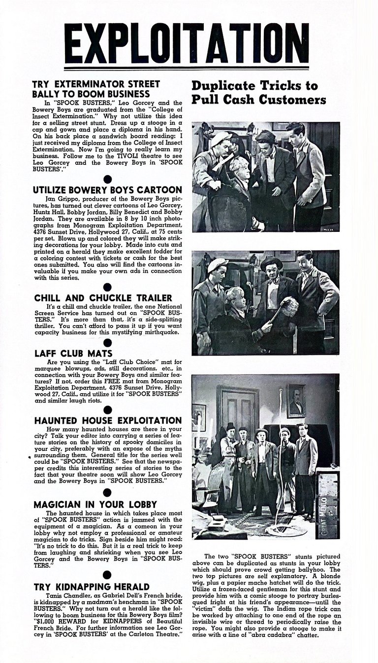Spook Busters is a 1946 American comedy horror film, directed by William Beaudine and starring the comedy team of The Bowery Boys. It is the fourth film in the series of forty eight.